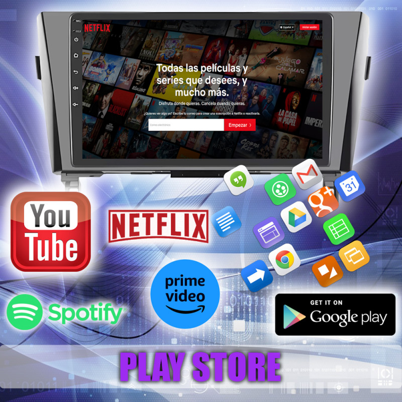 Google Play Store, YouTube, Netflix, Prime Video, TomTom, Spotify, YT Music, Google Maps, Facebook, entre muchas más.