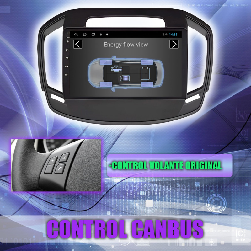 Soporta comunicación CANBUS, permitiendo controlar desde la pantalla los mandos del volante, sensores del coche y ajustes específicos del Opel Insignia.
