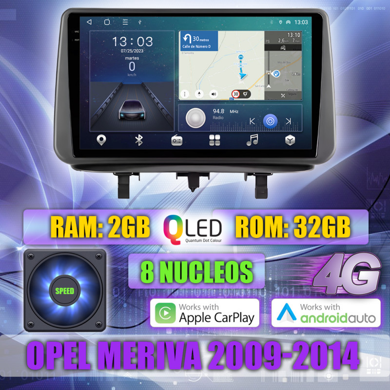PANTALLA GPS OPEL MERIVA 2009-2014 9 PULGADAS CARPLAY ANDROID AUTO TS18 QLED