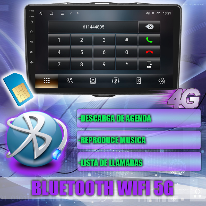 Soporte para tarjeta SIM 4G, permitiendo acceso a internet móvil directamente desde la unidad.
