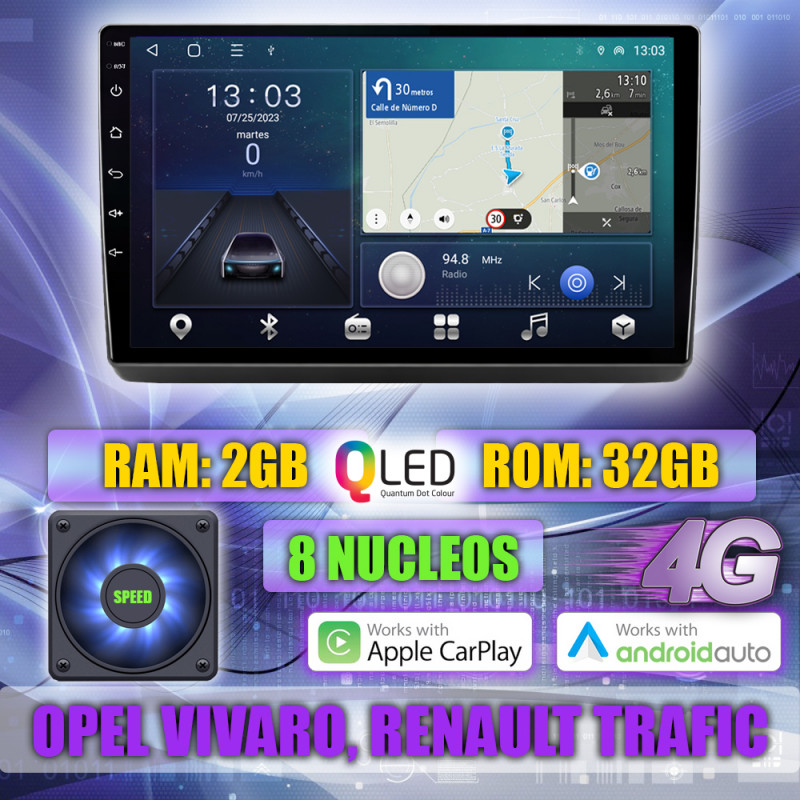 Pantalla QLED Táctil Multimedia para Opel Vivaro 2006-2010, Renault Trafic 2001-2006, Nissan Primastra 2006-2014 - Sistema Android TS18 Modernizado