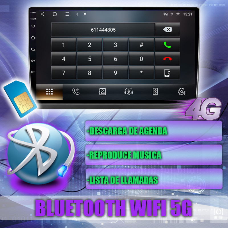 Soporte para tarjeta SIM 4G, permitiendo acceso a internet móvil directamente desde la unidad.