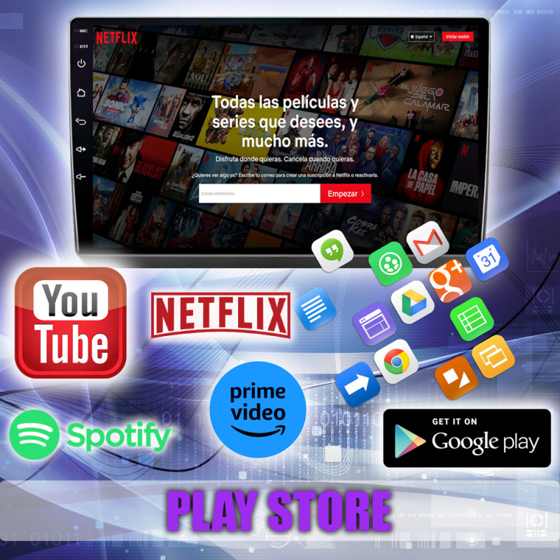 Google Play Store, YouTube, Netflix, Prime Video, TomTom, Spotify, YT Music, Google Maps, Facebook, entre muchas más.