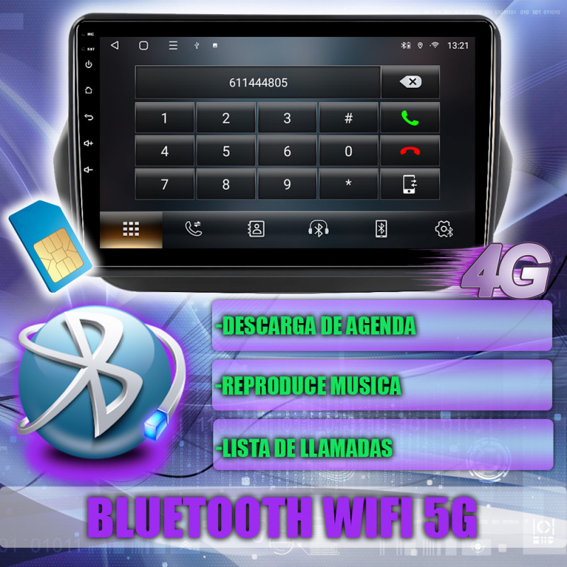 Soporte para tarjeta SIM 4G, permitiendo acceso a internet móvil directamente desde la unidad.