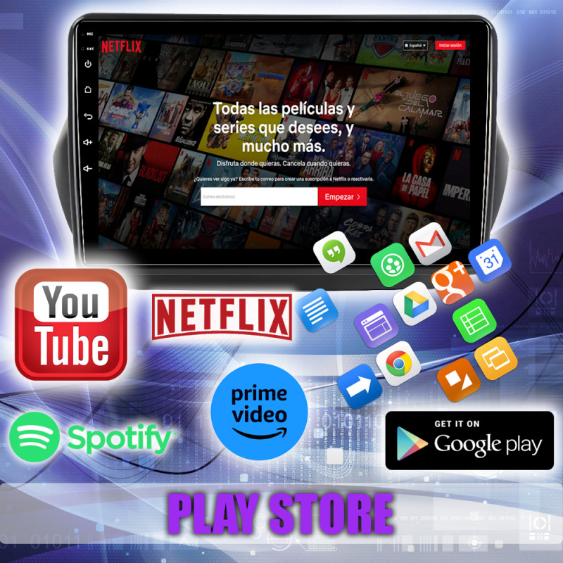 Google Play Store, YouTube, Netflix, Prime Video, TomTom, Spotify, YT Music, Google Maps, Facebook, entre muchas más.