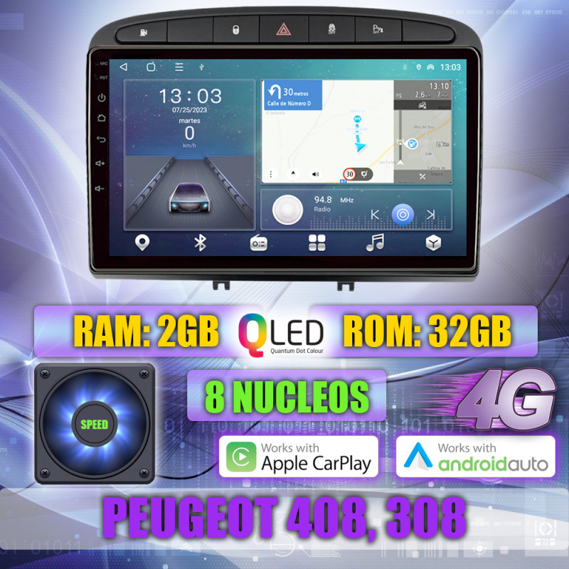 PANTALLA GPS PEUGEOT 308, 408 2007-2014 CARPLAY ANDROID AUTO TS18 QLED