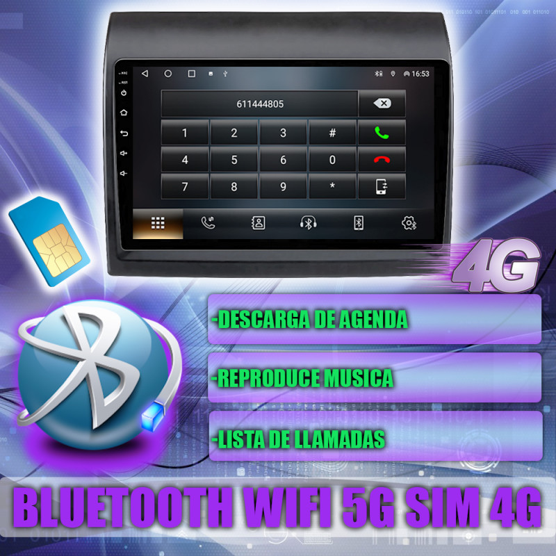Soporte para tarjeta SIM 4G, permitiendo acceso a internet móvil directamente desde la unidad.