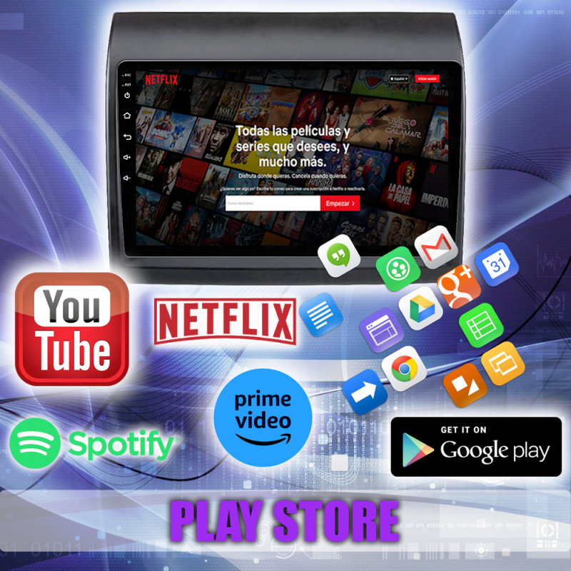 Google Play Store, YouTube, Netflix, Prime Video, TomTom, Spotify, YT Music, Google Maps, Facebook, entre muchas más.