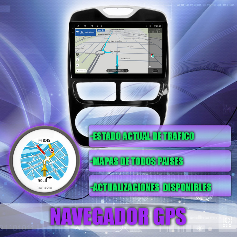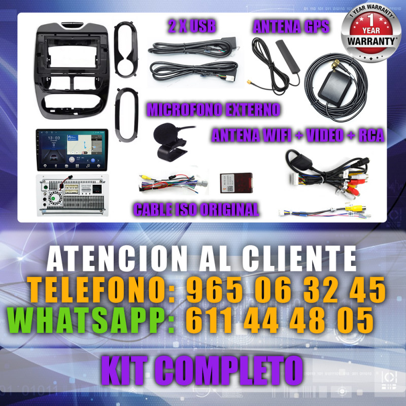 Soporta comunicación CANBUS, permitiendo controlar desde la pantalla los mandos del volante, sensores del coche y ajustes específicos del Renault Clio.