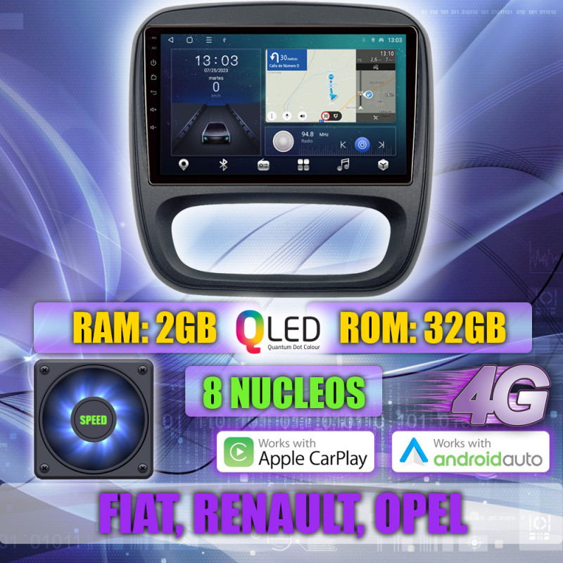 PANTALLA GPS RENAULT TRAFIC, FIAT TALENTO, OPEL VIVARO, 2014-2019 9 PULGADAS CARPLAY ANDROIDAUTO TS18 QLED
