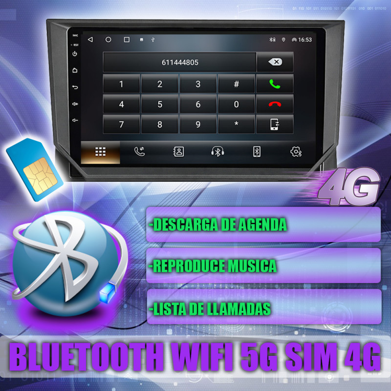Soporte para tarjeta SIM 4G, permitiendo acceso a internet móvil directamente desde la unidad.