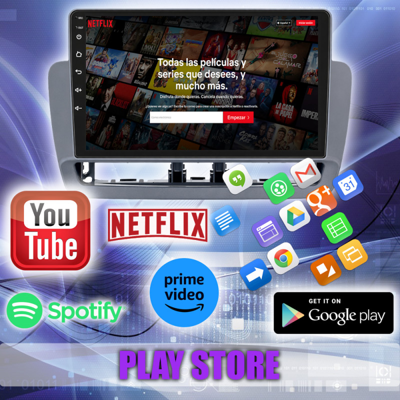 Google Play Store, YouTube, Netflix, Prime Video, TomTom, Spotify, YT Music, Google Maps, Facebook, entre muchas más.