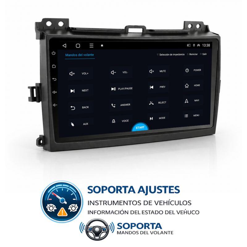 • Soporta comunicación con mandos del volante, permitiendo controlar desde la pantalla los mandos del volante en Toyota Land Cruiser.