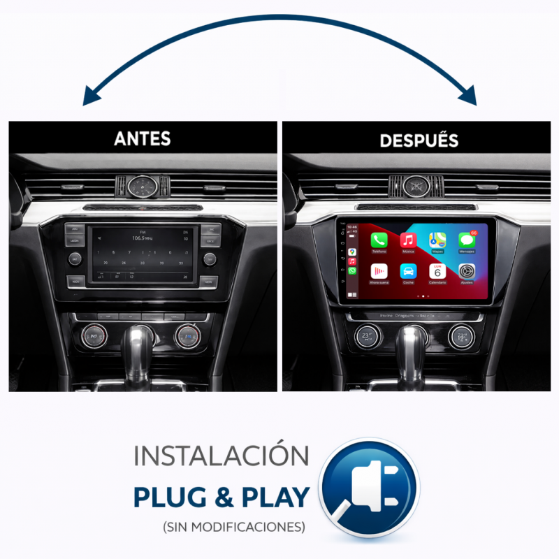 Disfruta de una experiencia multimedia completa en tu Volkswagen Passat B8 con esta avanzada pantalla táctil, diseñada para ofrecer conectividad, entretenimiento y control total del vehículo desde un solo dispositivo.
