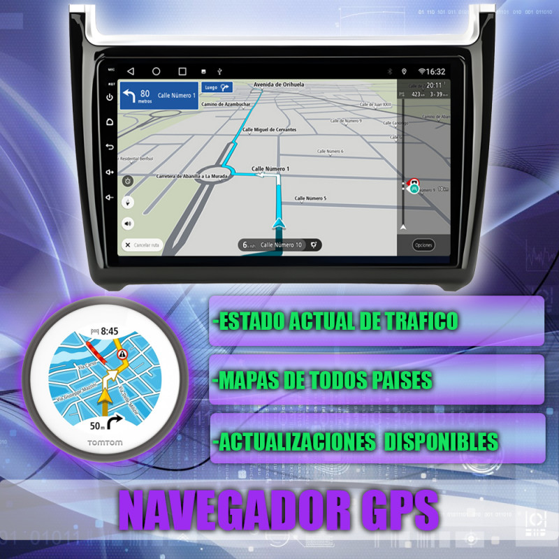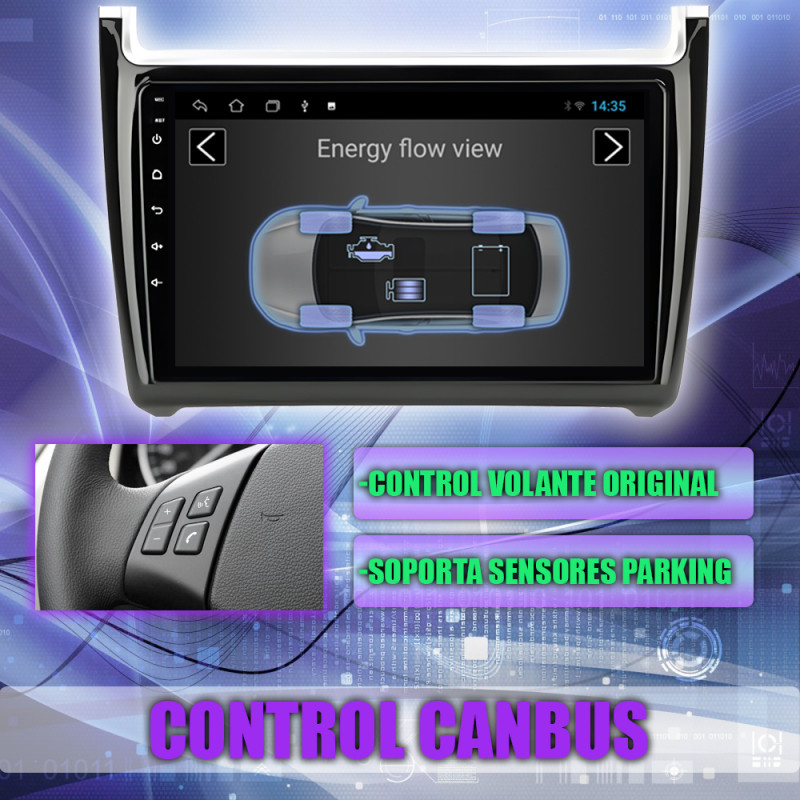 Soporta comunicación CANBUS, permitiendo controlar desde la pantalla los mandos del volante, sensores del coche y ajustes específicos del Volkswagen Polo.
