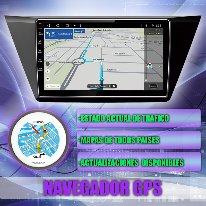 Memoria 2 GB de RAM y 32 GB de almacenamiento interno (ROM) para aplicaciones, mapas y contenido multimedia.