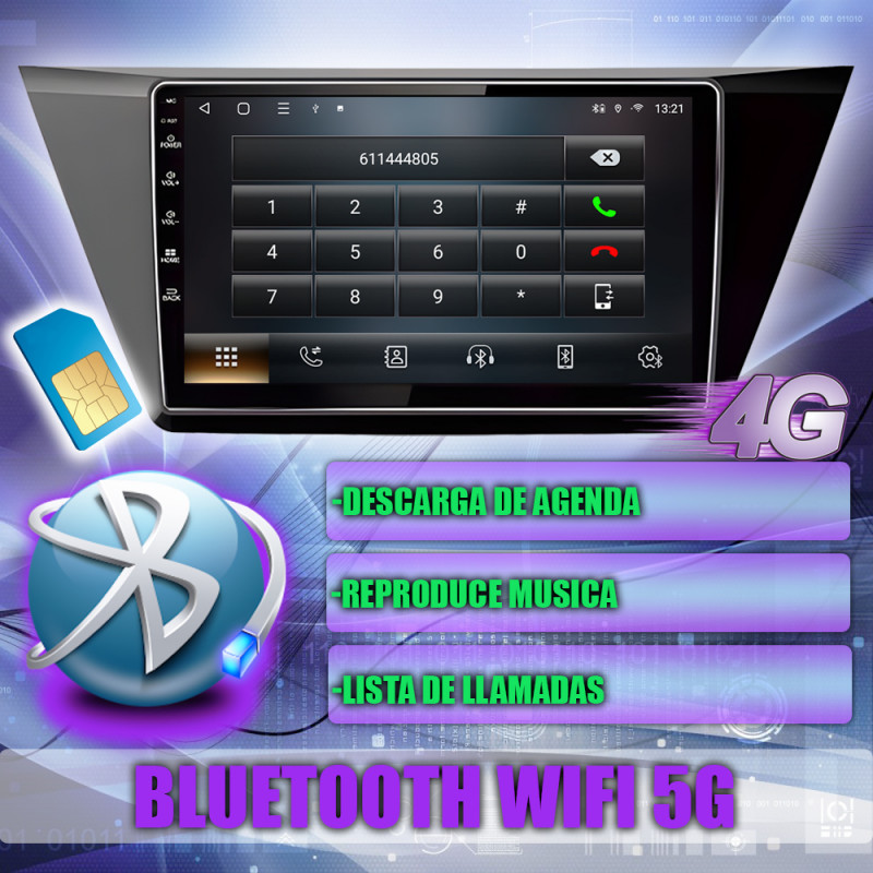 Soporte para tarjeta SIM 4G, permitiendo acceso a internet móvil directamente desde la unidad.