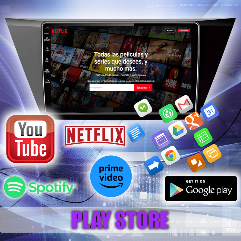 Google Play Store, YouTube, Netflix, Prime Video, TomTom, Spotify, YT Music, Google Maps, Facebook, entre muchas más.