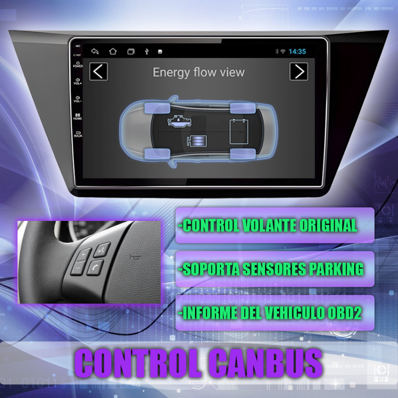 Soporta comunicación CANBUS, permitiendo controlar desde la pantalla los mandos del volante, sensores del coche y ajustes específicos del Volkswagen Touran.