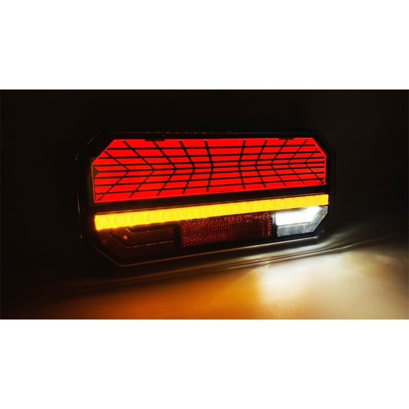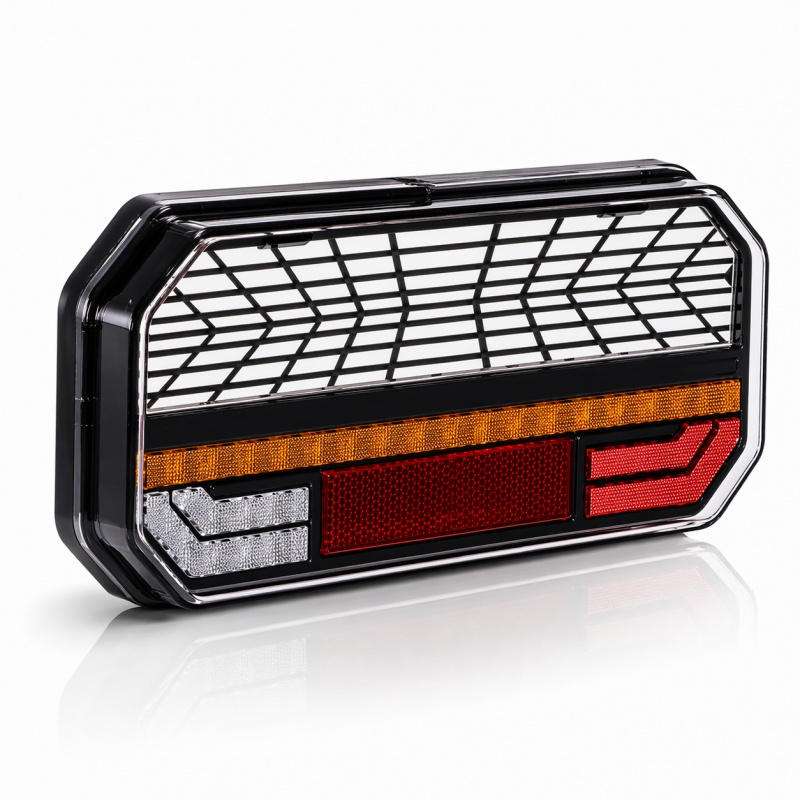 Este modelo incluye todas las funciones obligatorias según normativa europea: posición, freno, intermitente, marcha atrás y antiniebla trasera, y es compatible con instalaciones de 12V y 24V, por lo que resulta ideal para vehículos industriales, remolques y maquinaria.