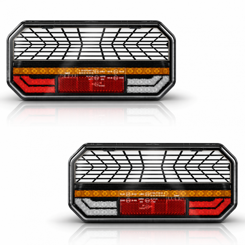 Equipa tu camión, tráiler o remolque con estos pilotos traseros LED multifunciones de diseño moderno efecto neón y intermitente progresivo (dinámico). Ofrecen una iluminación potente y uniforme que mejora la visibilidad del vehículo en carretera, aumentando la seguridad tanto de día como de noche.