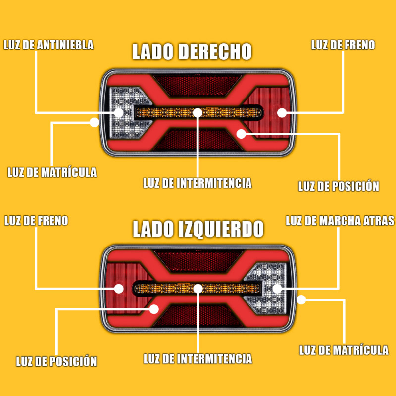 Pilotos traseros LED universales diseñados para su instalación en camiones, remolques, semirremolques, caravanas y vehículos industriales. Compatibles con sistemas eléctricos de 12V y 24V, estos pilotos ofrecen una alta visibilidad, bajo consumo energético y una larga vida útil.