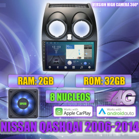 PANTALLA GPS NISSAN QASHQAI 2006-2014 CAMERA VERSION 360º CARPLAY ANDROID AUTO TS18 QLED