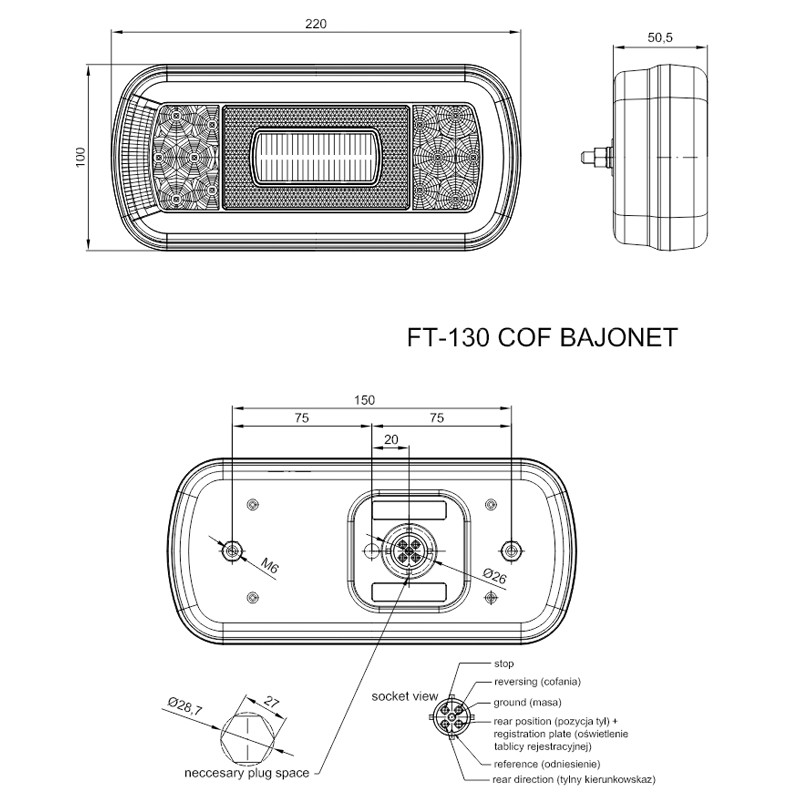 PILOTOS LED TRASEROS MULTIFUNCIONE CON ENCHUFE BAJONET 5 PINES LUZ MATRICULA 12V 24V