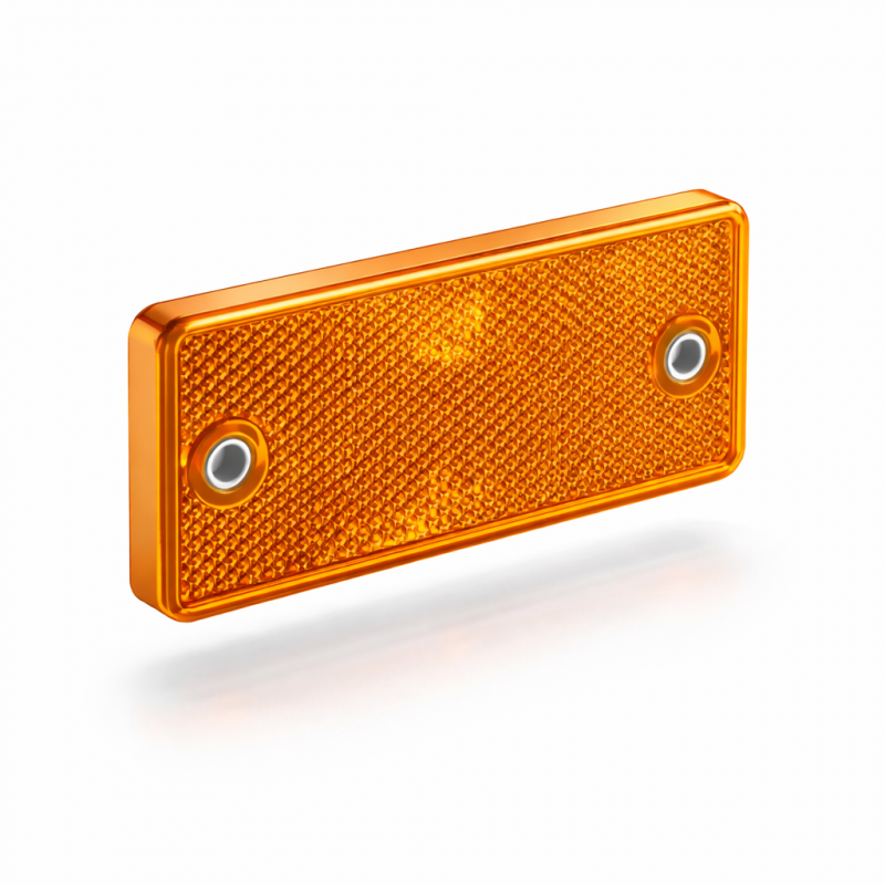 El catadióptrico rectangular ámbar FRISTOM está diseñado para mejorar la visibilidad lateral y la seguridad vial, reflejando de forma eficaz la luz de otros vehículos incluso en condiciones de baja iluminación, niebla o lluvia.