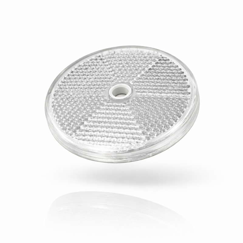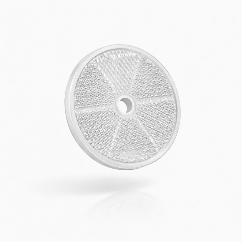 El reflector catadióptrico redondo blanco FRISTOM está diseñado para mejorar la visibilidad y la seguridad vial, reflejando eficazmente la luz de los vehículos incluso en condiciones de baja iluminación, niebla o lluvia.